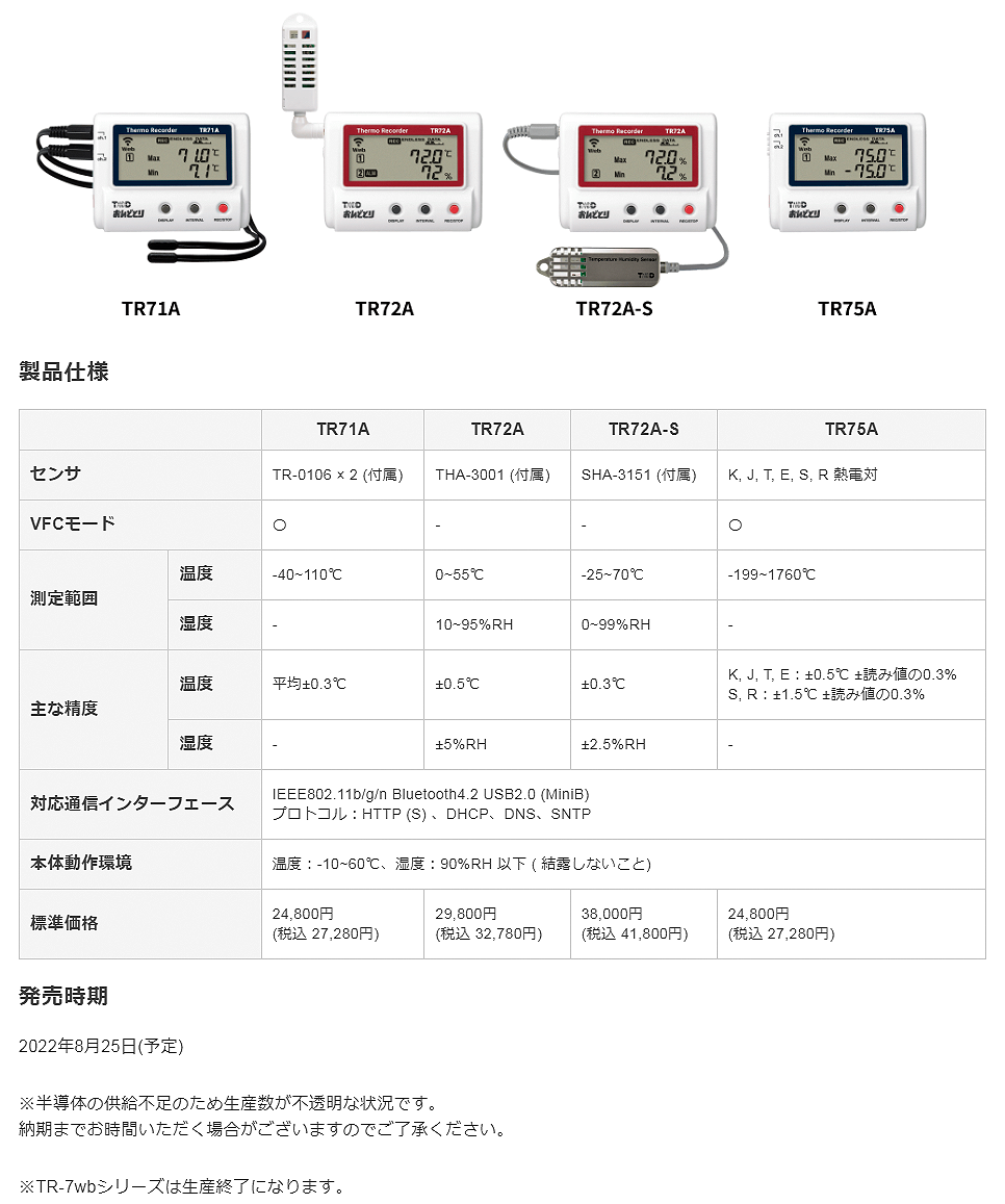 TANDD溫濕度計TR72A