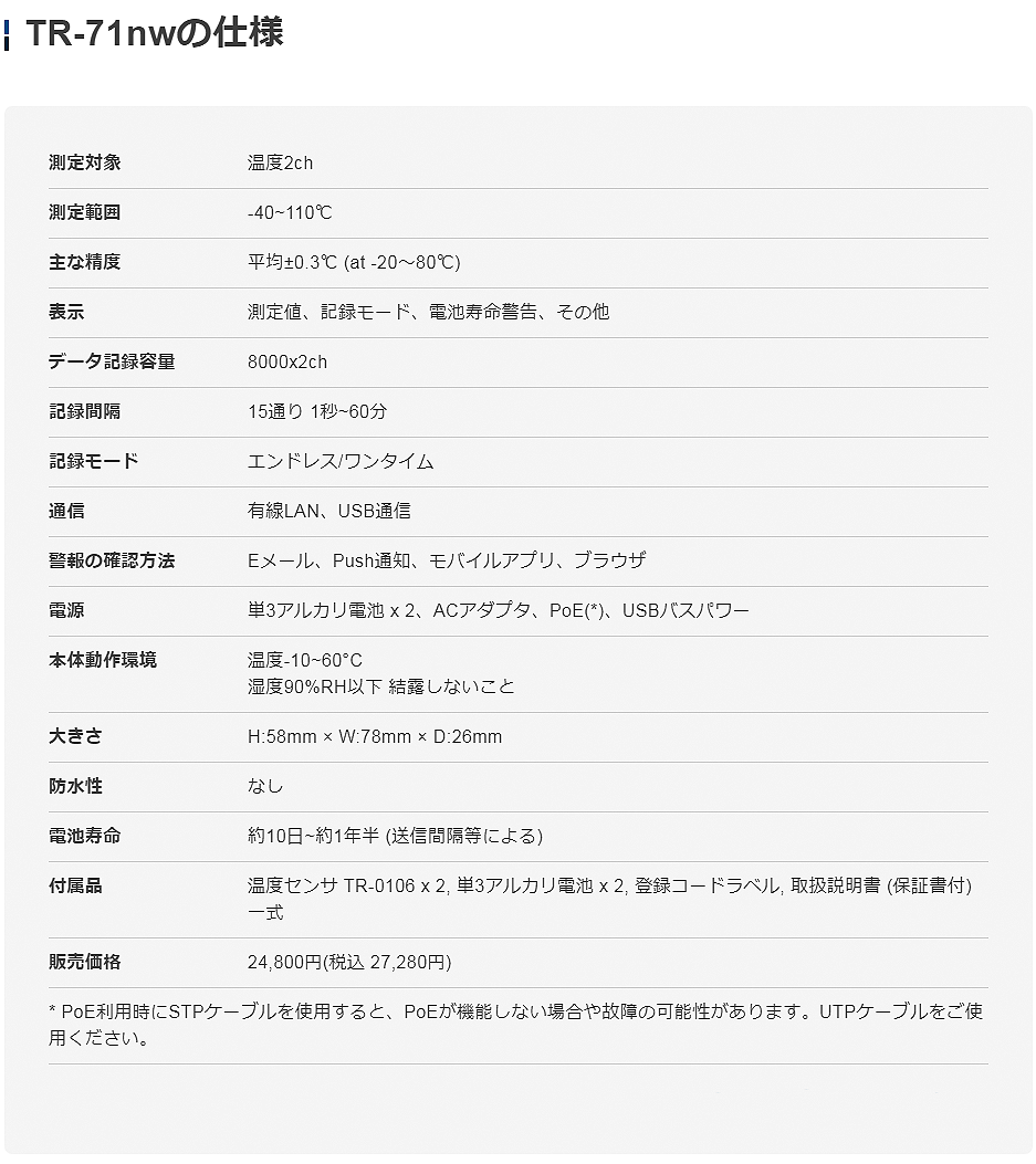 TANDD溫濕度數(shù)據(jù)記錄器TR-71nw