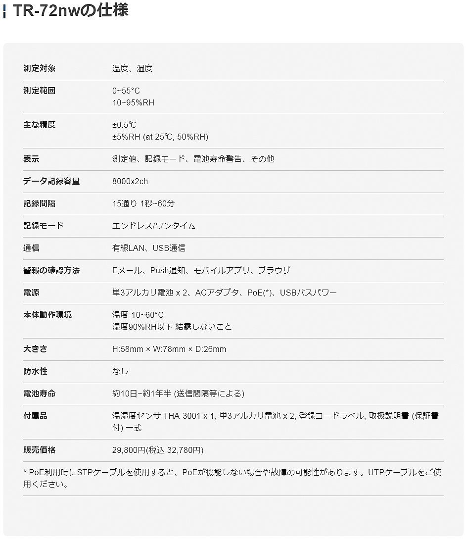TANDD溫濕度數(shù)據記錄器TR-72nw