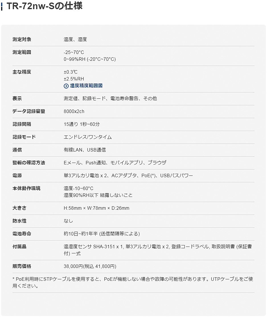 TANDD溫濕度數據記錄器TR-72nw-S