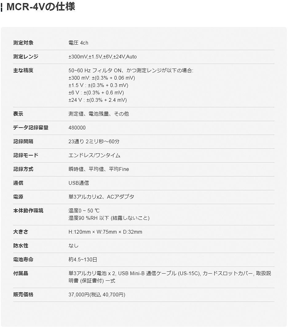 TANDD數(shù)據(jù)記錄器MCR-4V