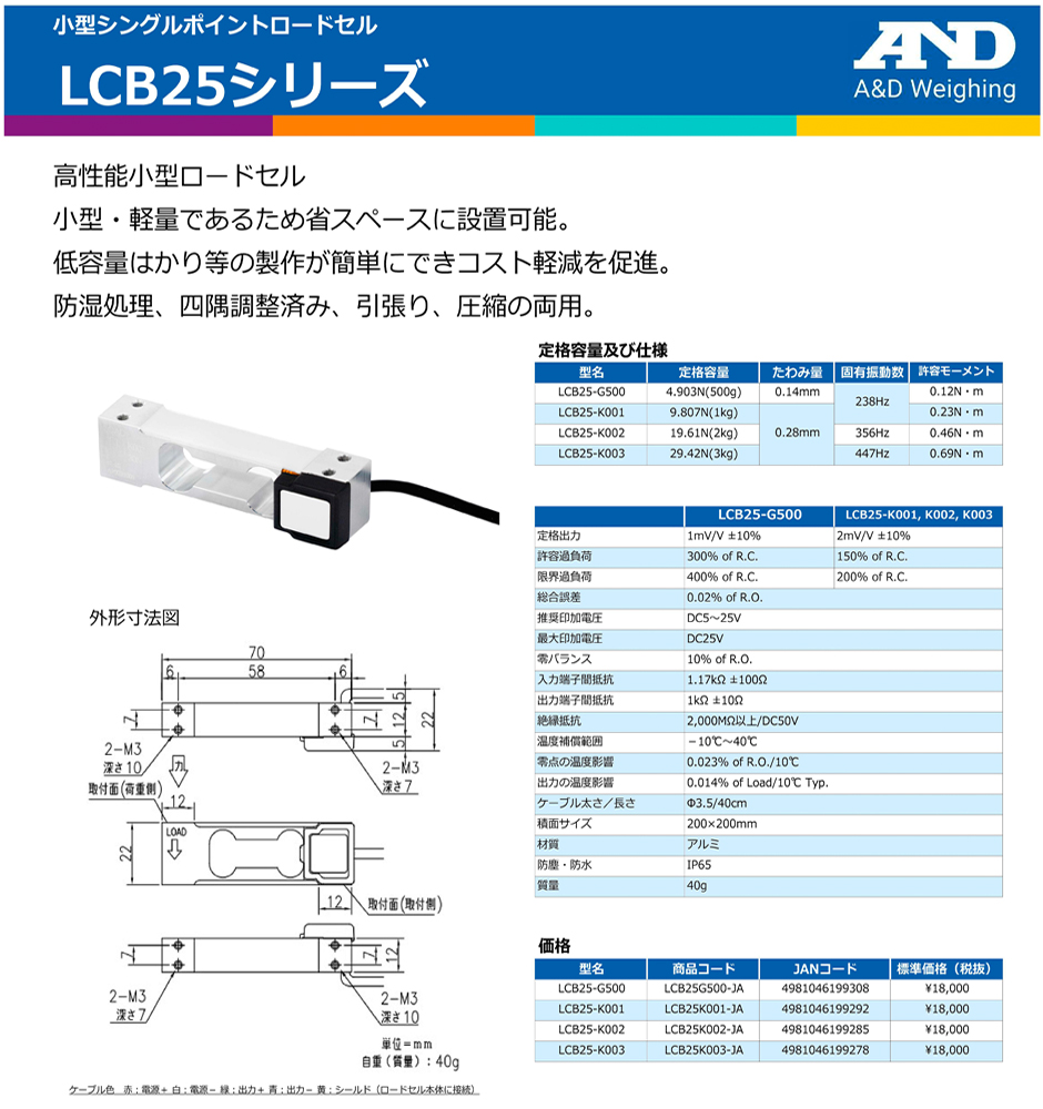 AND(A&D)稱重傳感器LCB25-G500