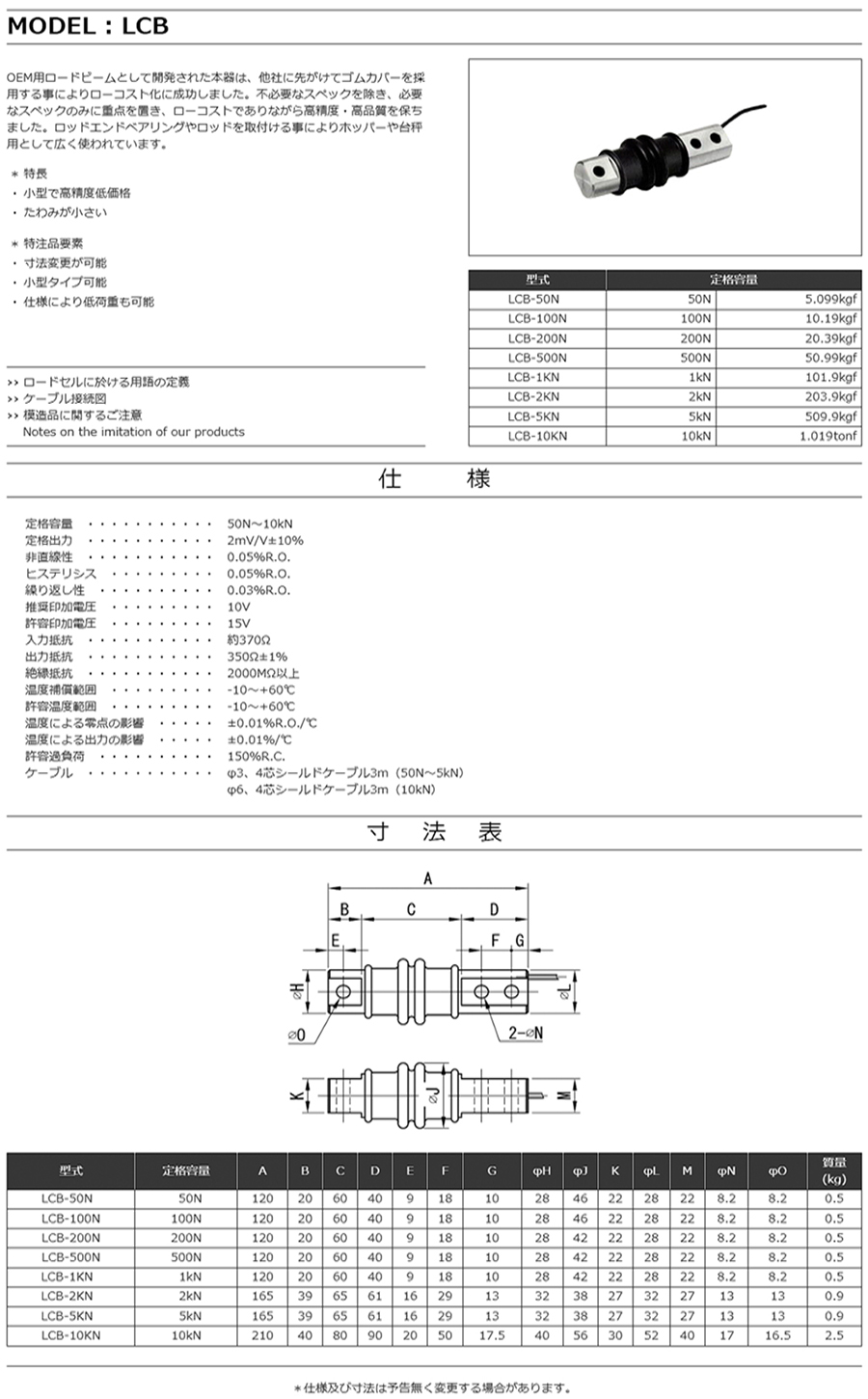 特殊測器荷重傳感器LCB-200N