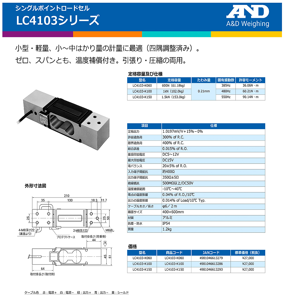 AND(A&D)稱重傳感器LC4103-K060
