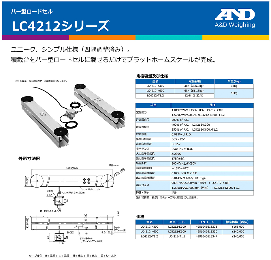 AND(A&D)稱重傳感器LC4212-K300