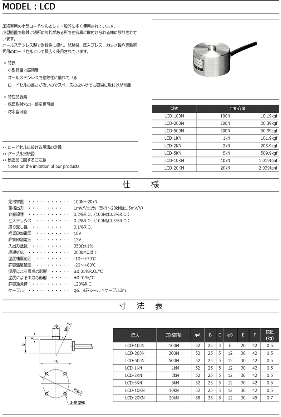 特殊測器荷重傳感器LCD-500N