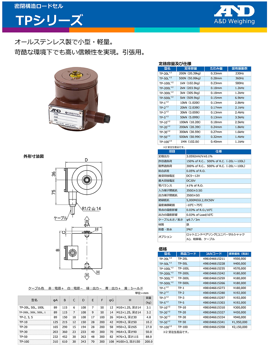 AND(A&D)負載傳感器TP-5