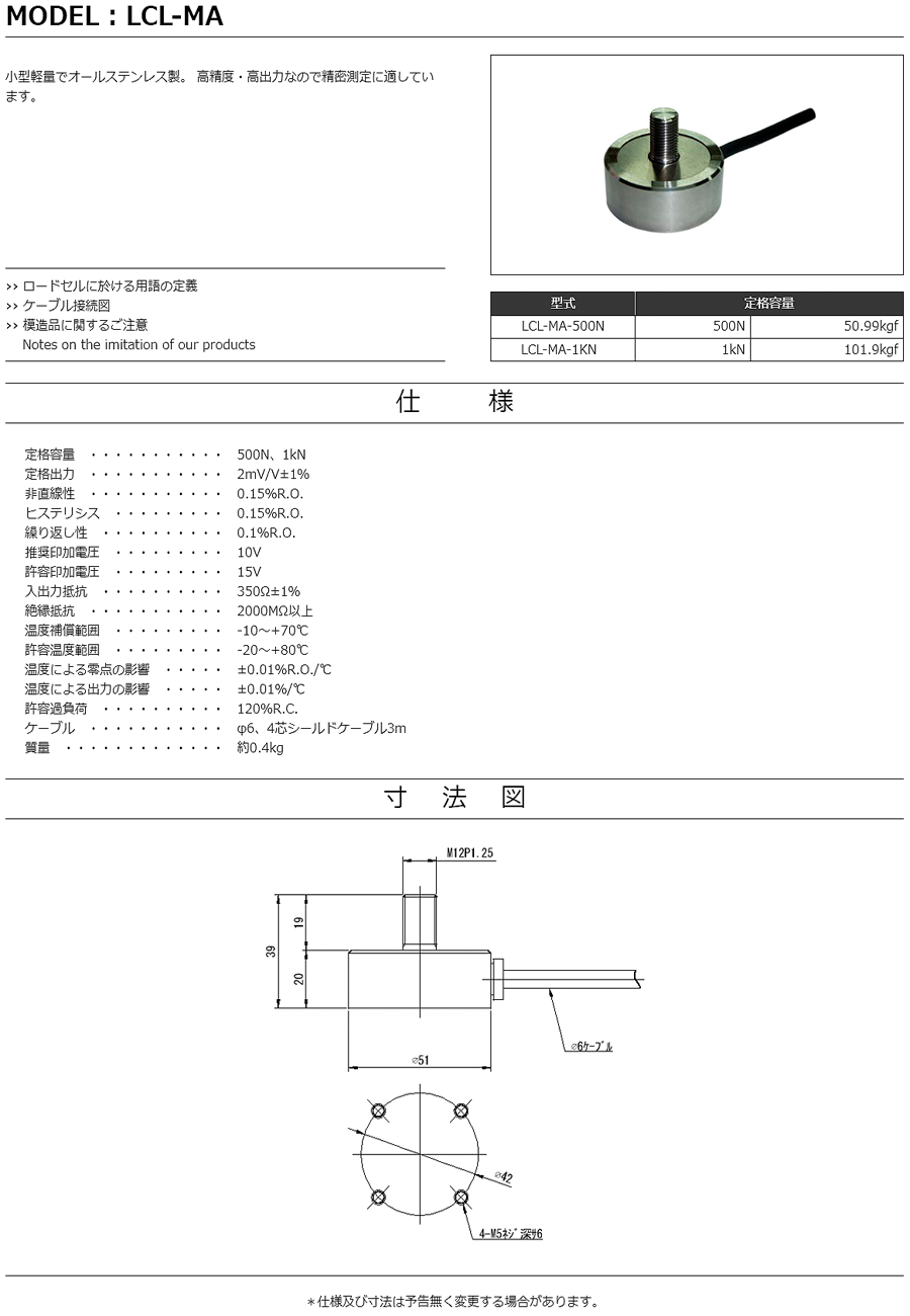 特殊測(cè)器荷重傳感器LCL-MA-500N
