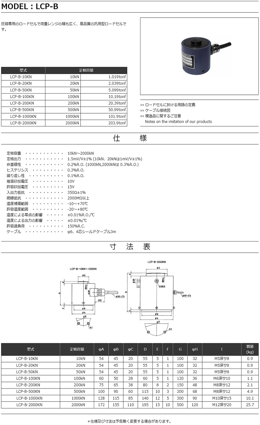 特殊測(cè)器荷重傳感器LCP-B-1000KN