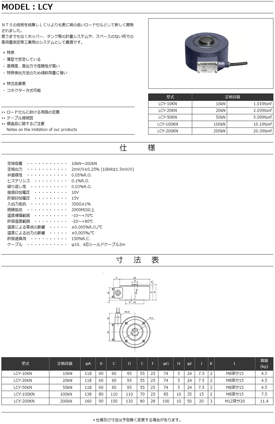 特殊測器荷重傳感器LCY-20KN