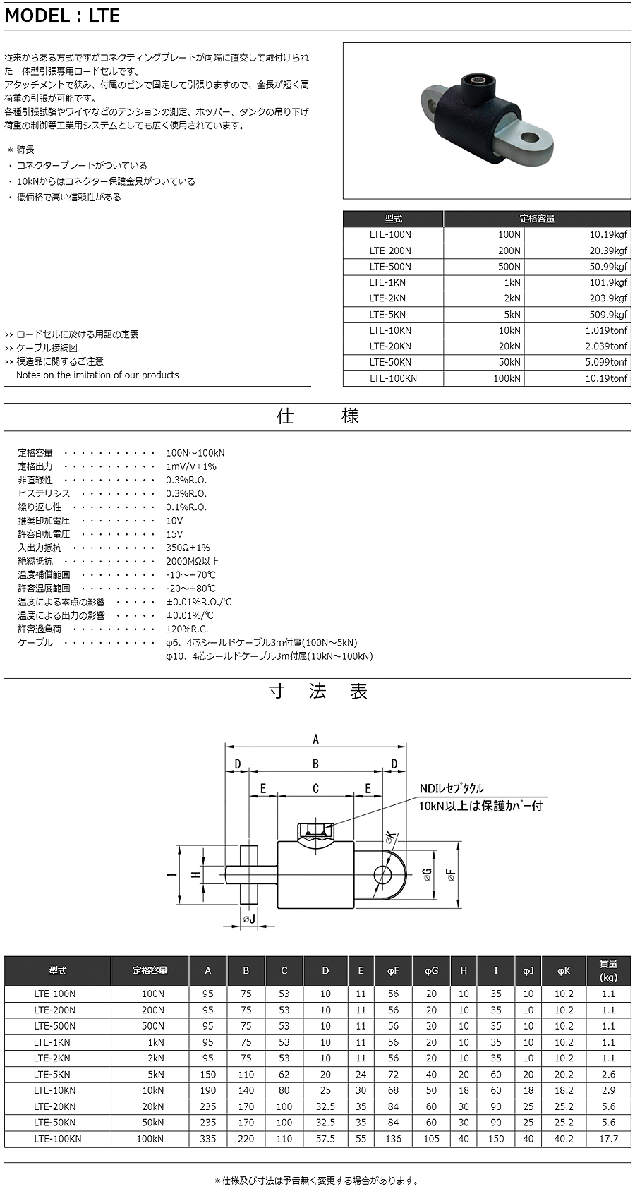 特殊測器拉伸用載荷傳感器LTE-50KN