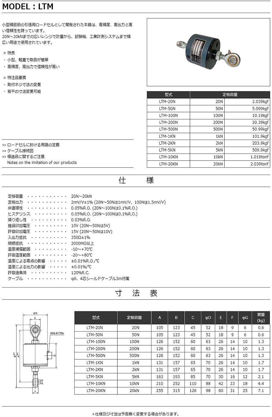特殊測器高精度載荷傳感器LTM-100N