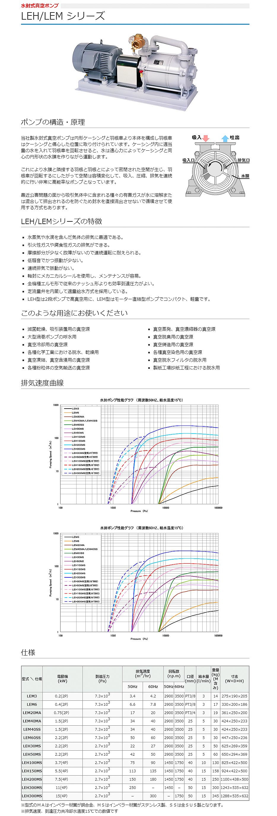樫山工業(yè)水封式真空泵LEM6